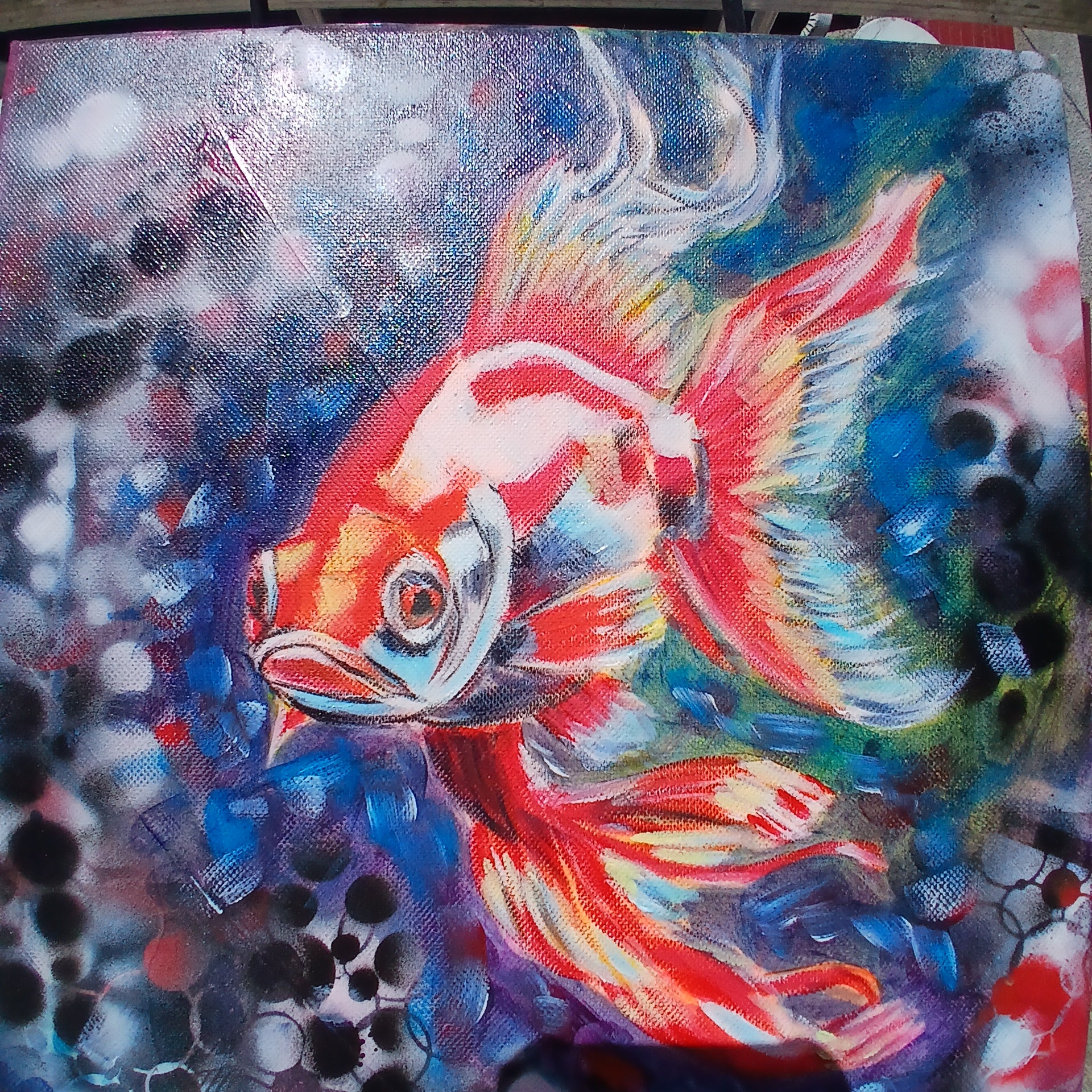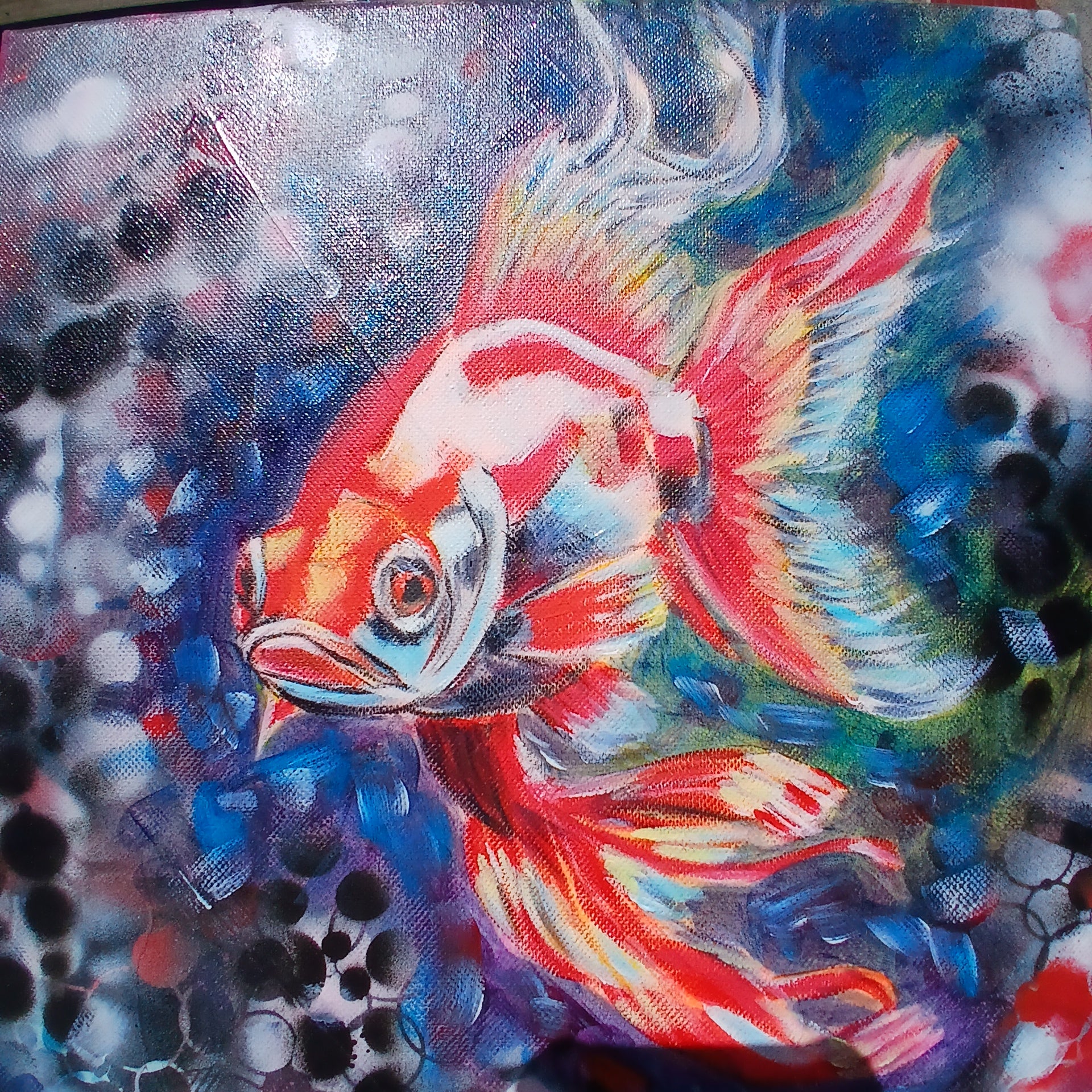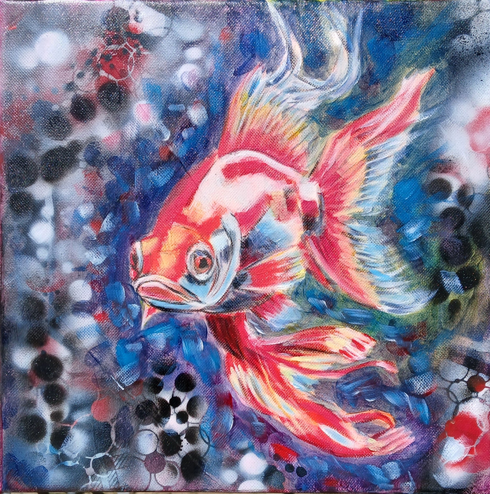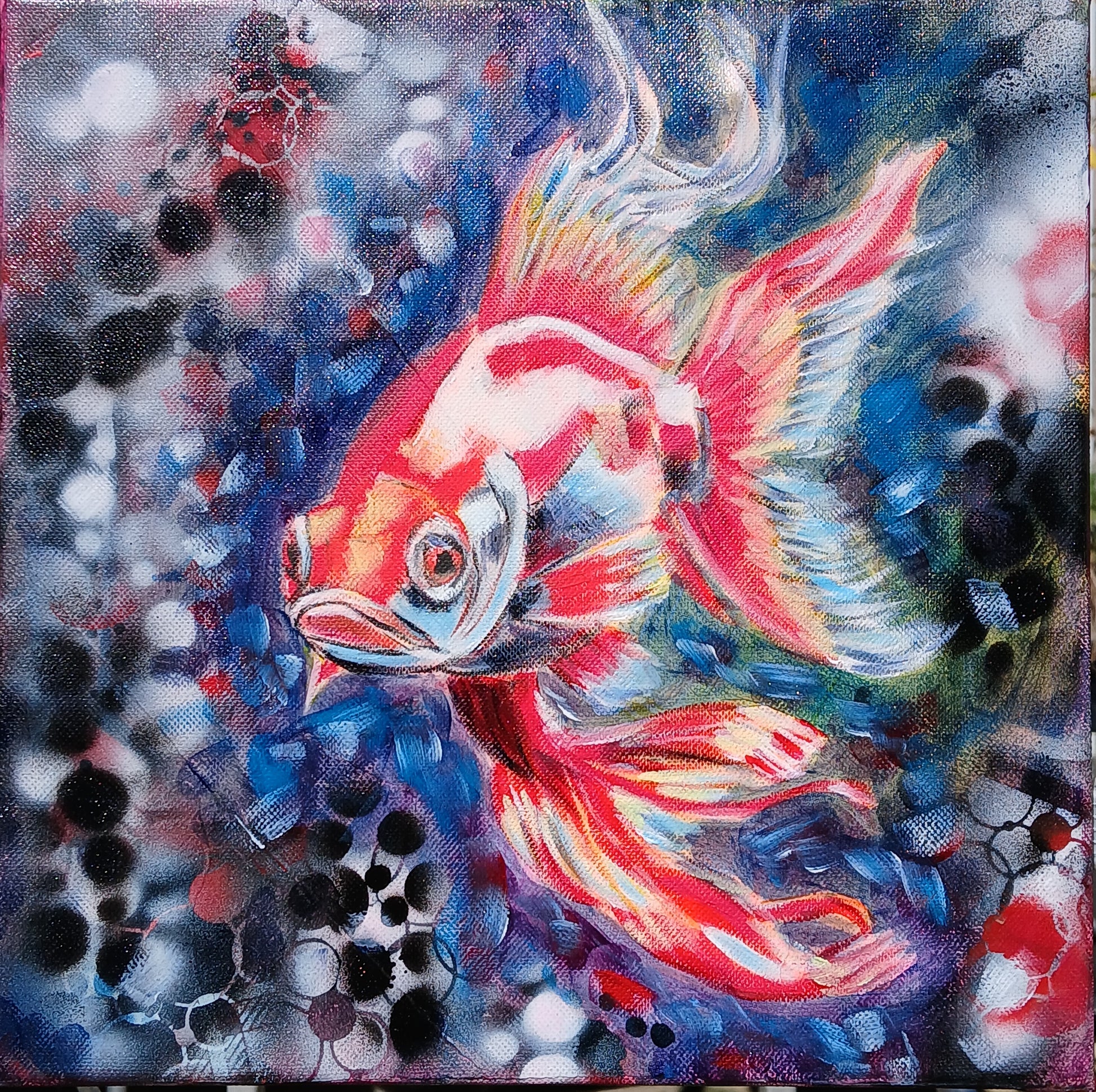 A splash of underwater life — a silent dance frozen on canvas, celebrating freedom and natural harmony.