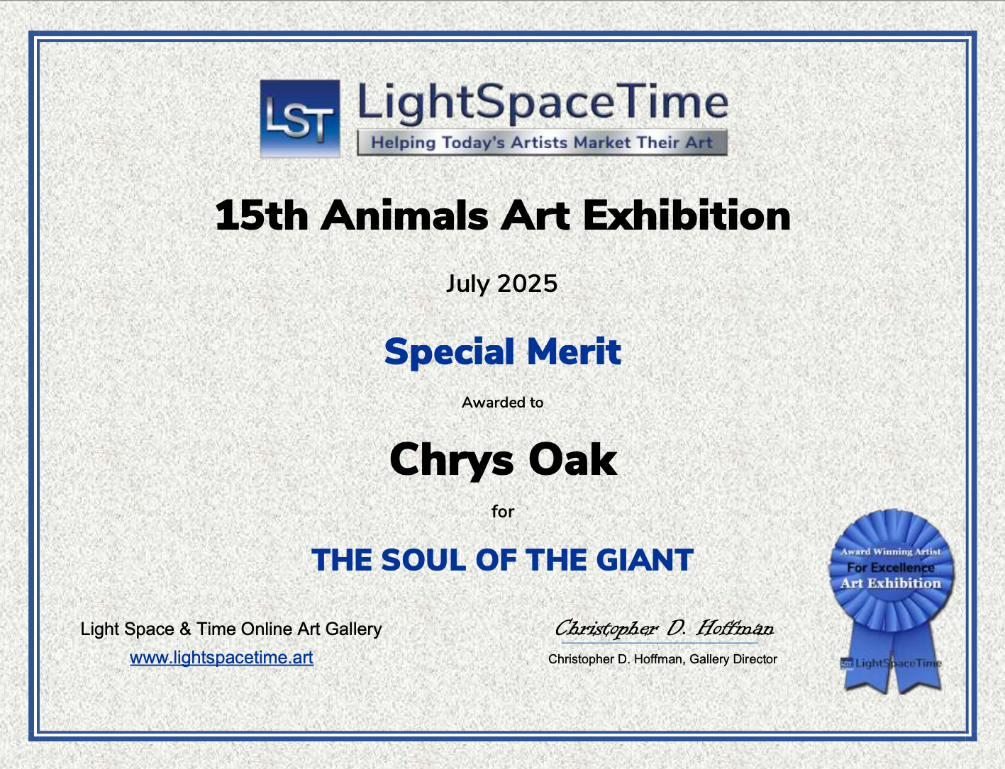 Award: Finalist – Animals Art Exhibition – July 2025 (Light Space & Time Online Gallery)
