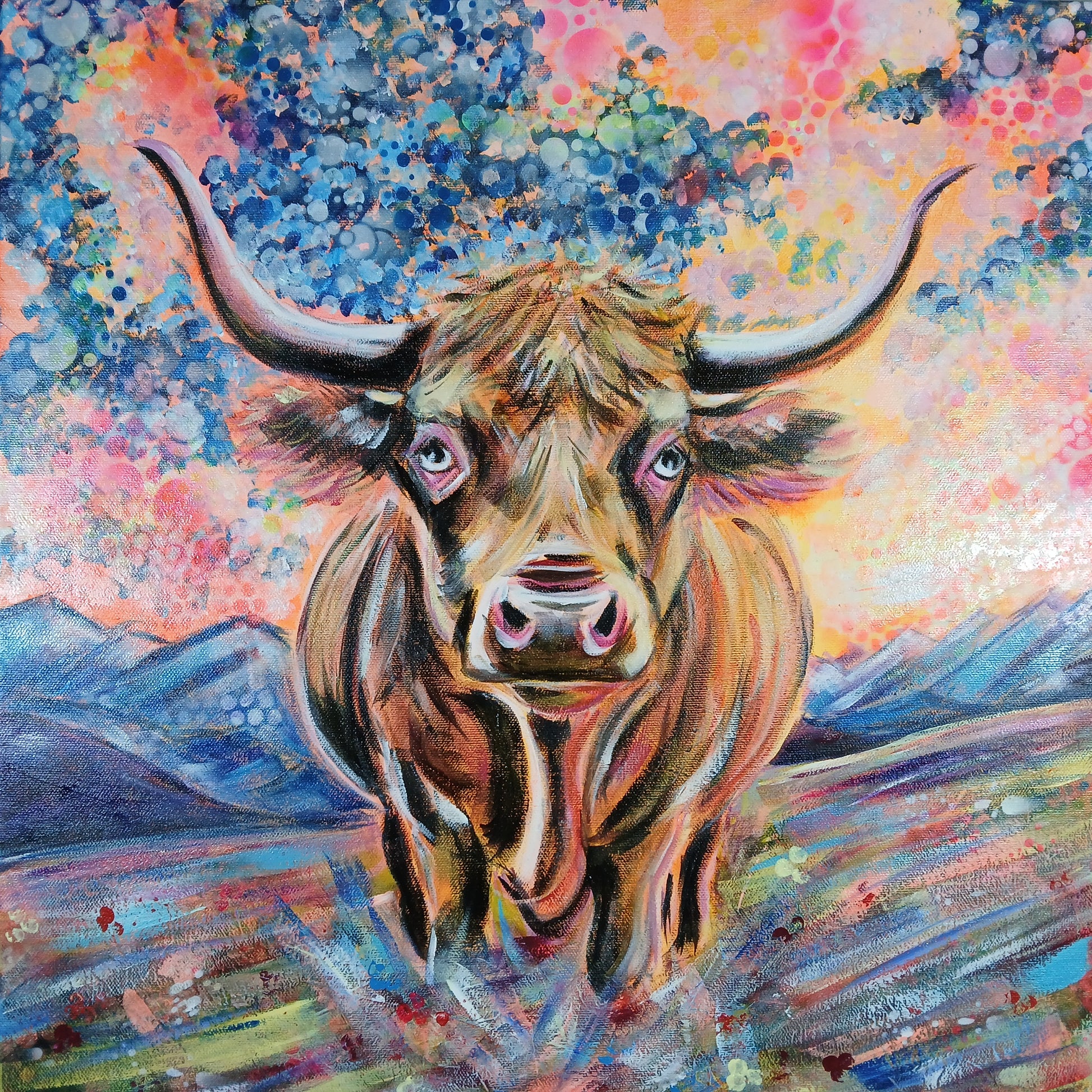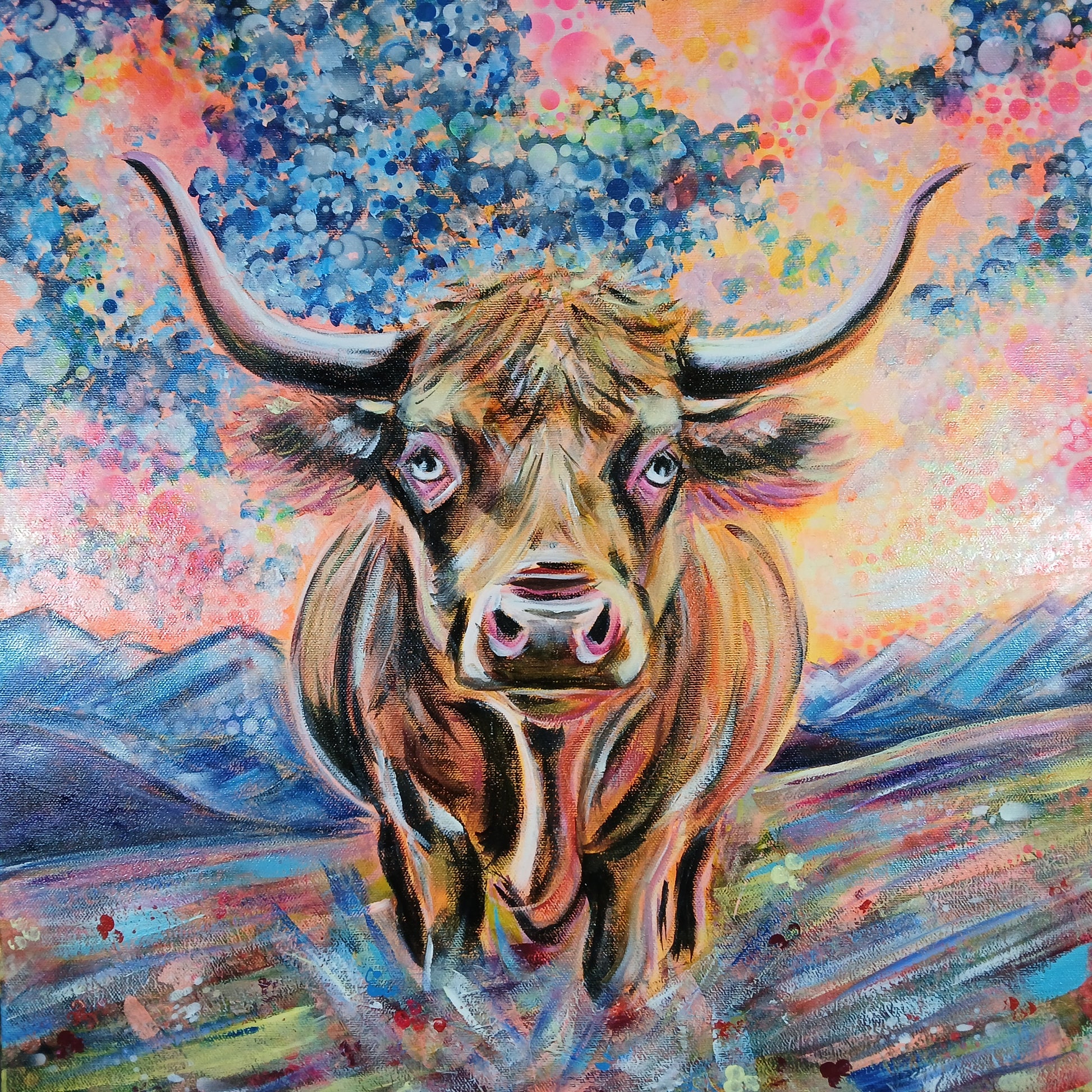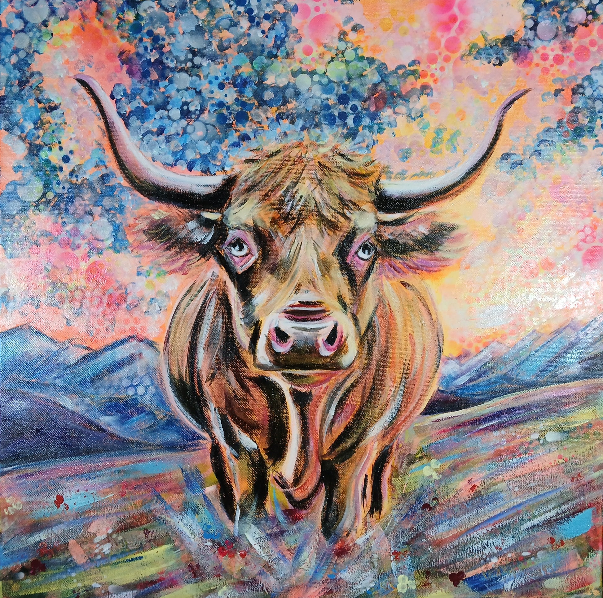 À travers cette œuvre, Chrys Oak rend hommage à la célèbre Blonde d’Aquitaine dans une vision poétique et cosmique.