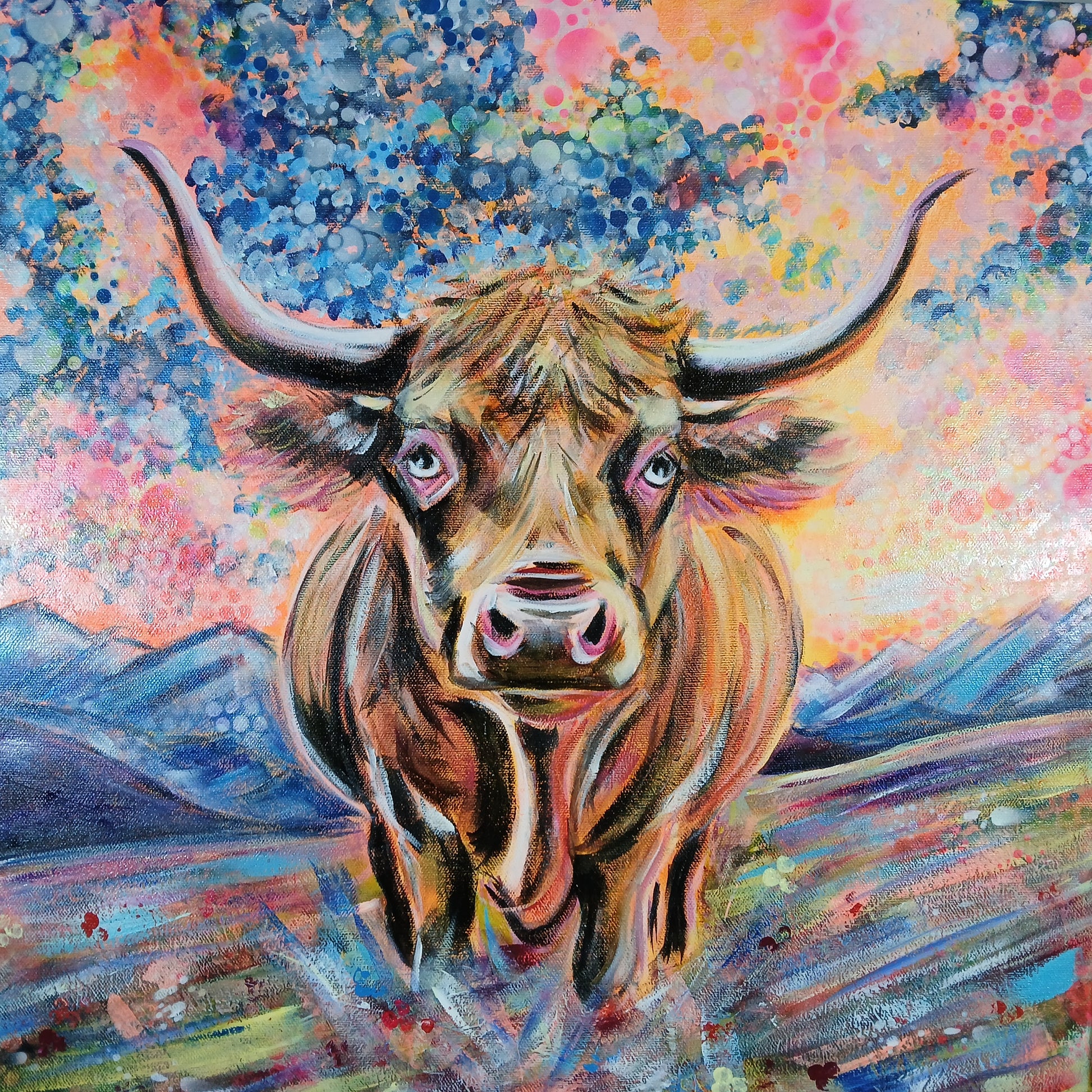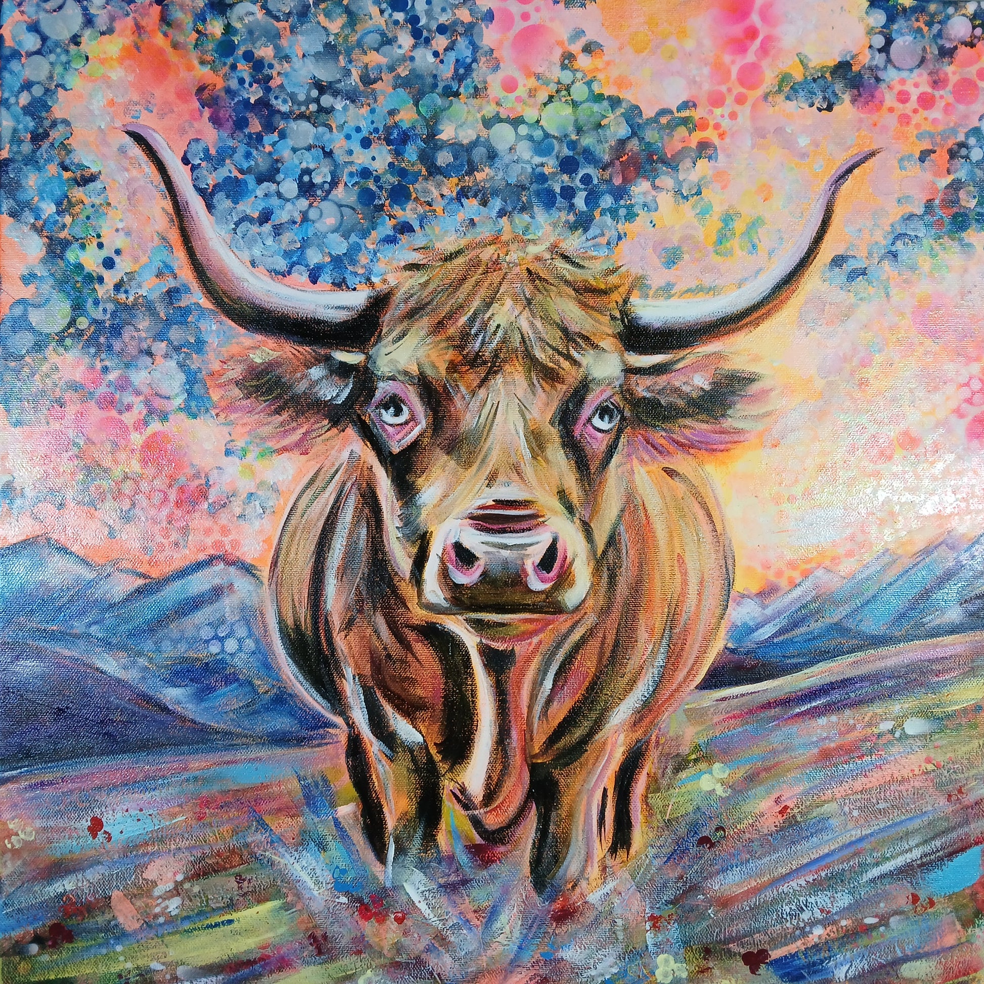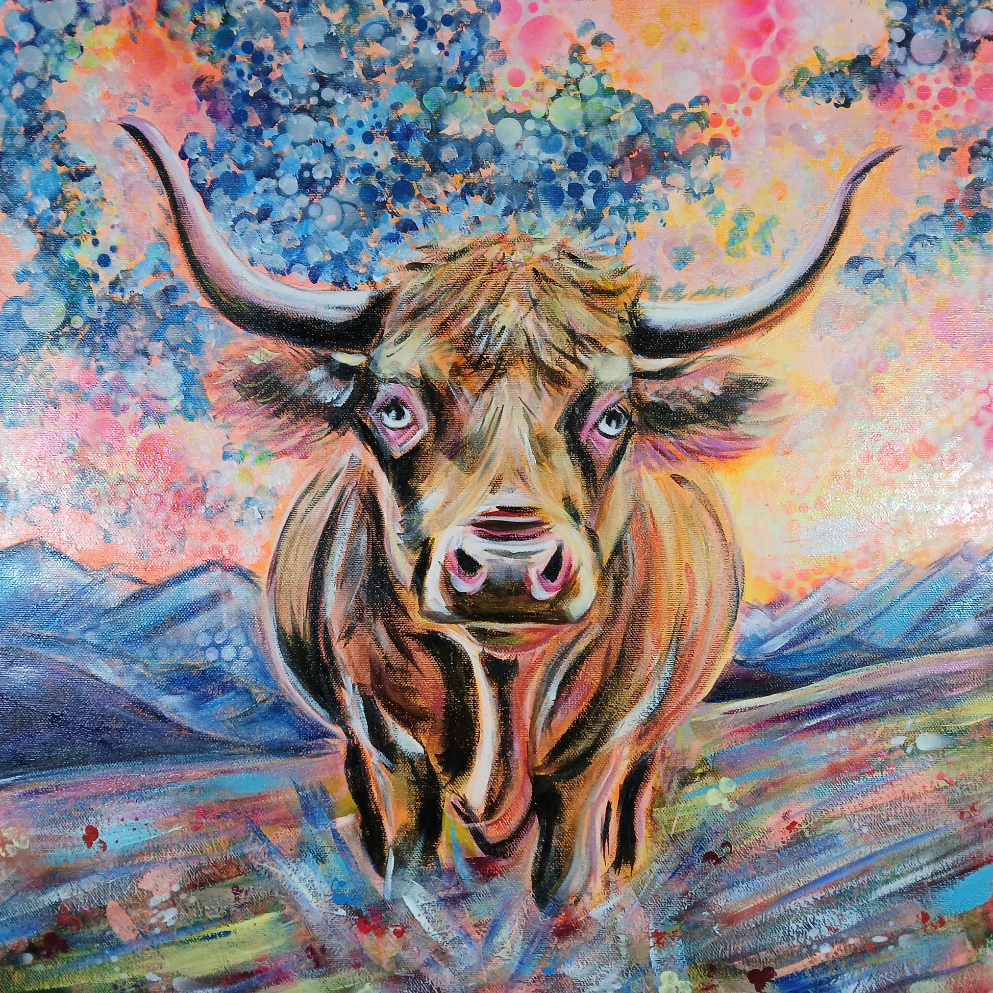 À travers cette œuvre, Chrys Oak rend hommage à la célèbre Blonde d’Aquitaine dans une vision poétique et cosmique.