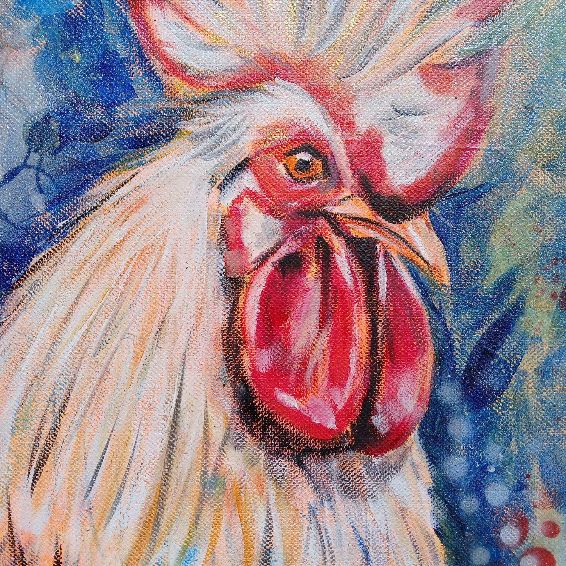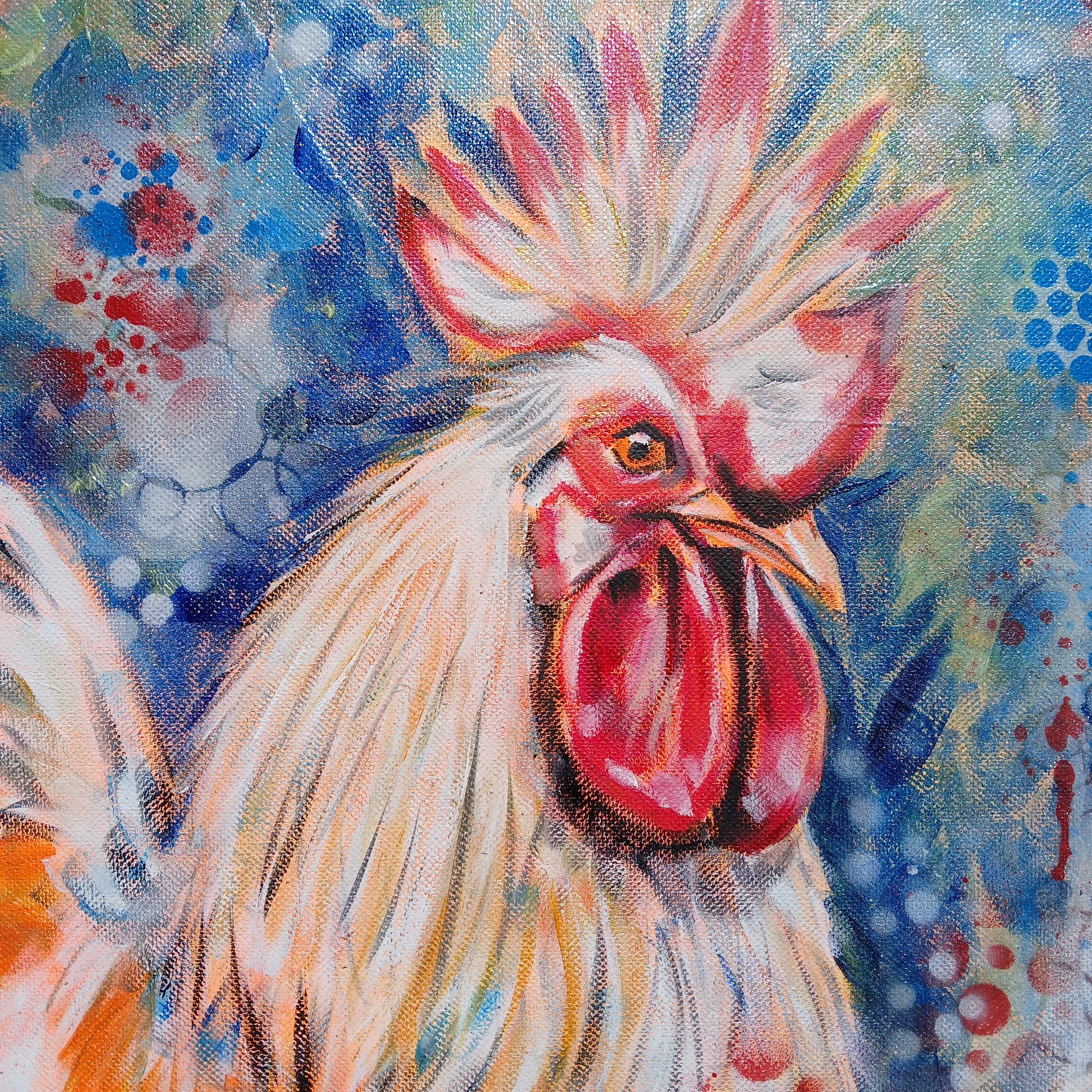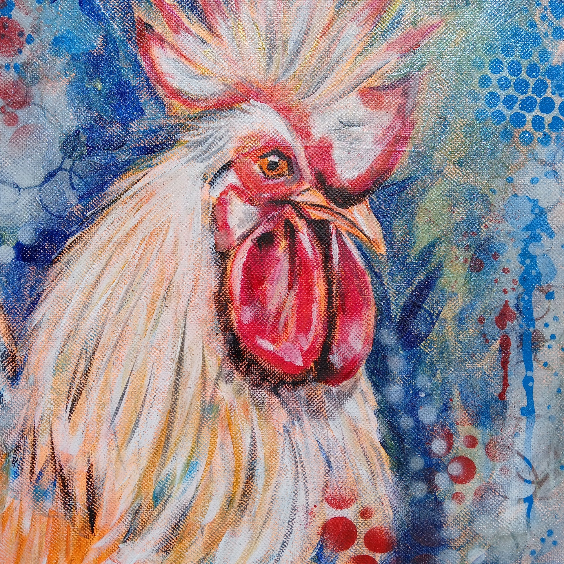 This painting is part of a limited series of 3 artworks titled Kings of the Barnyard.