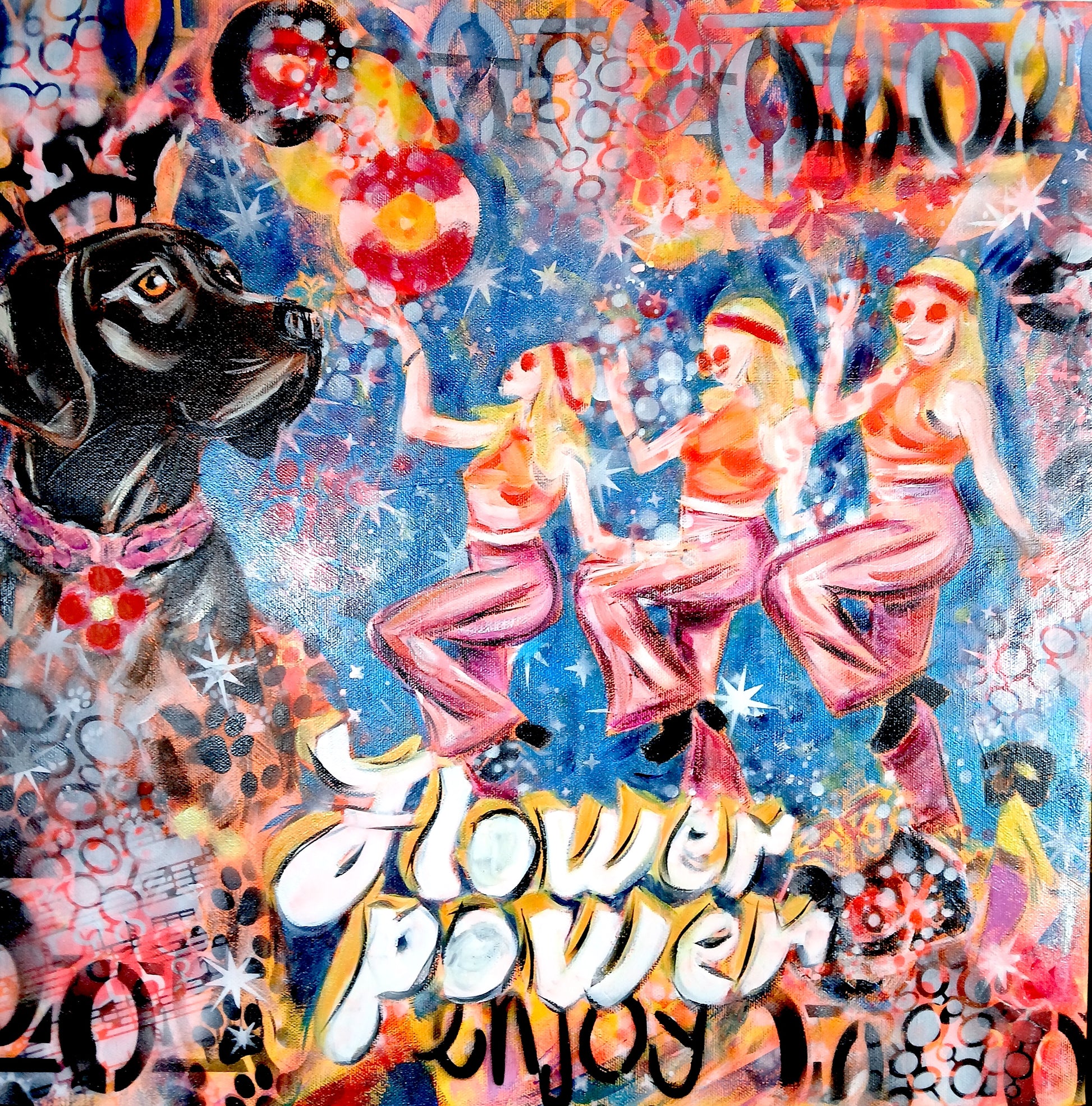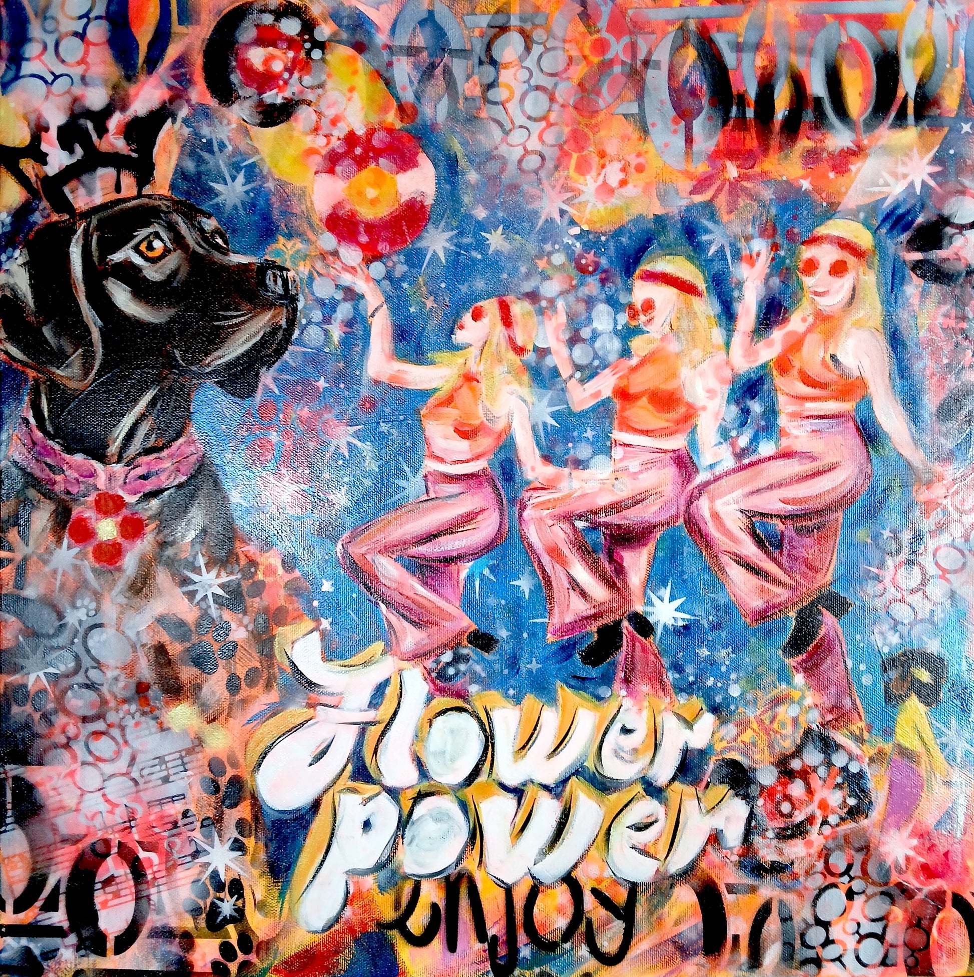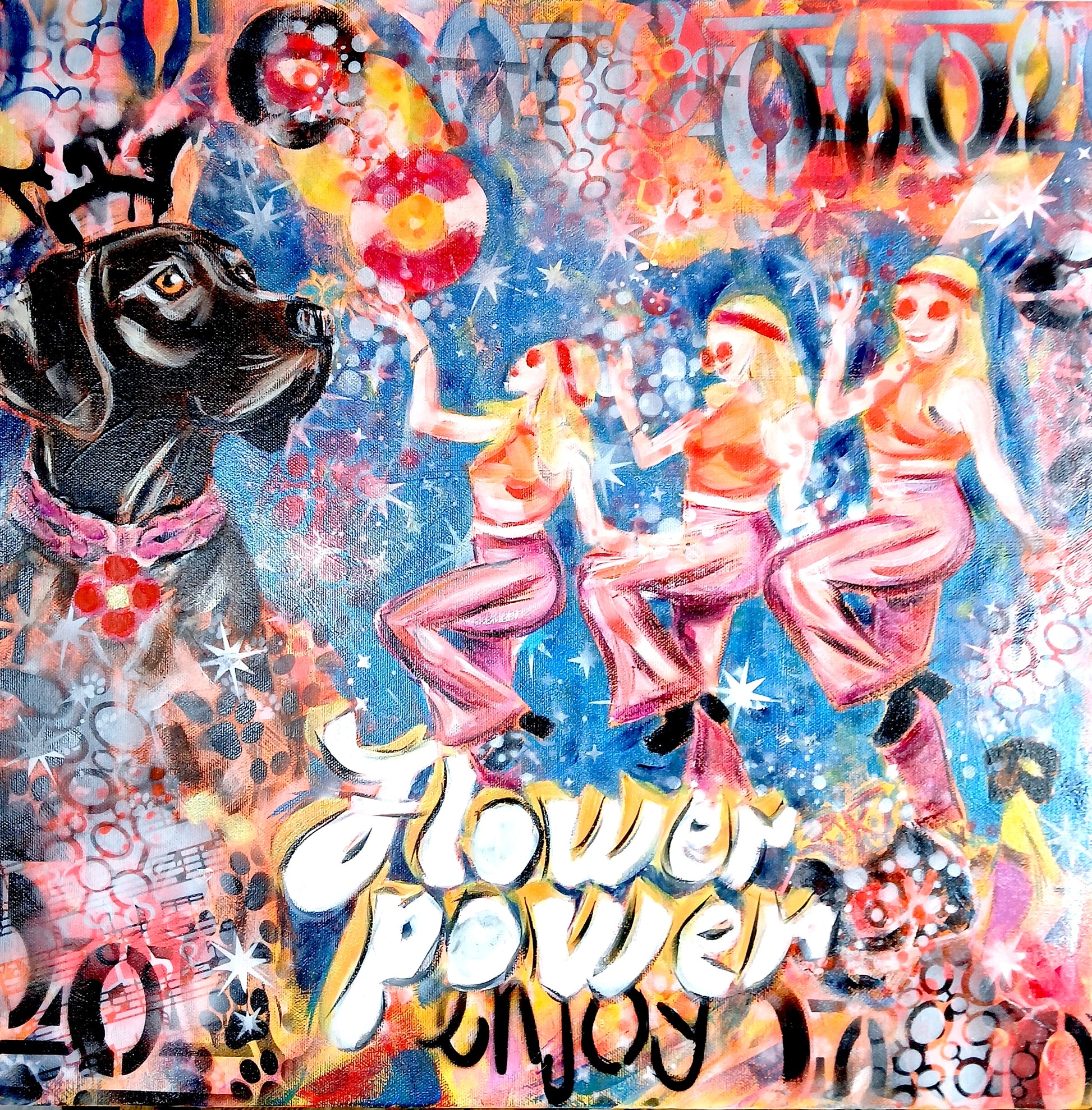 Sous une explosion de couleurs rétro et d’énergie seventies, “Psychedelic King Labrador – Gentleman Dog” réunit deux mondes : celui du chien fidèle et celui de la liberté joyeuse du Flower Power.