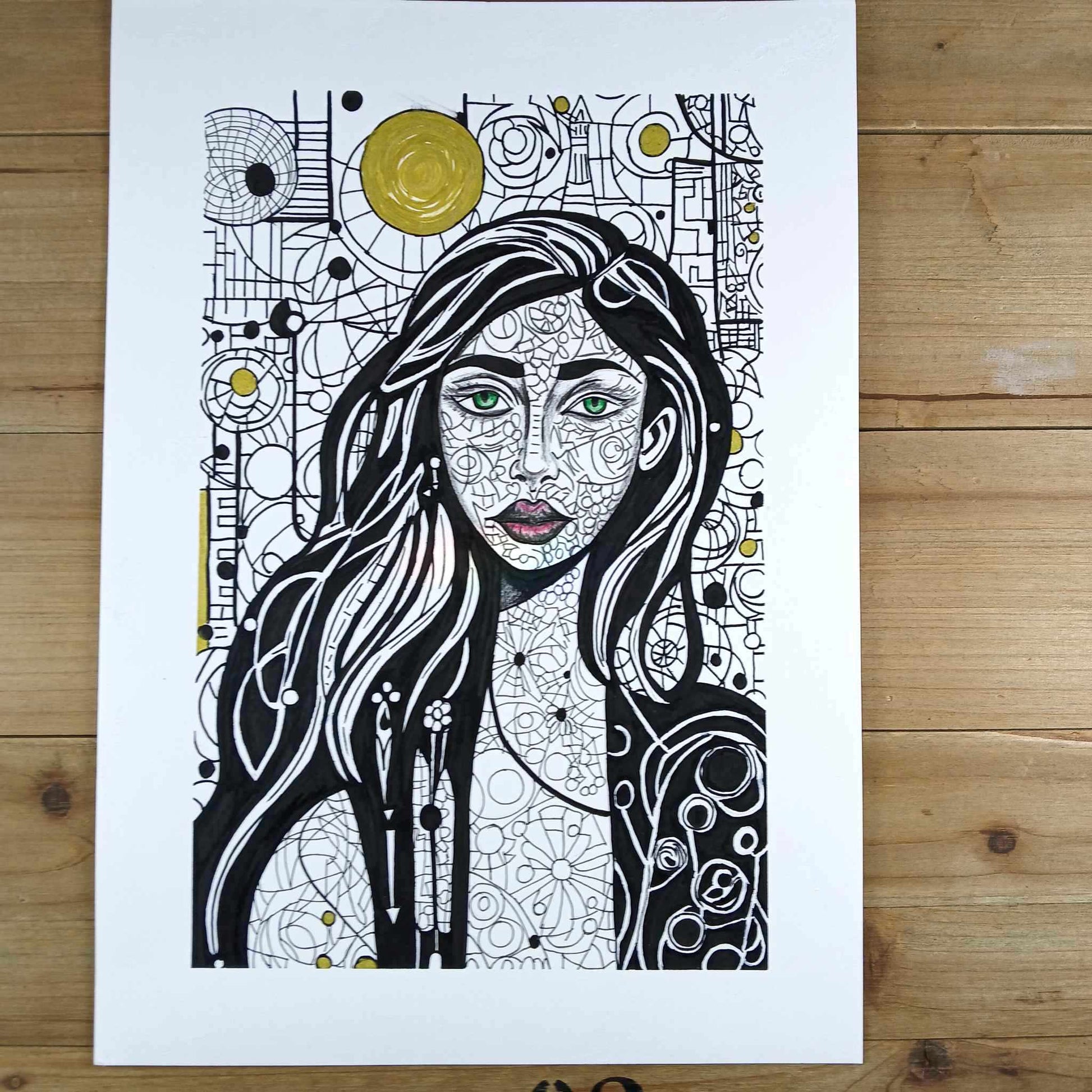 Medium: Acrylic markers, felt-tip pens, colored pencils & spray varnish on 240gsm paper